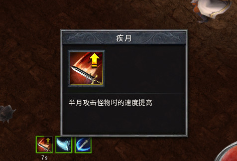 疾月:相信很多半月战士非常熟悉,攻击速度+5.。效果方面,头上月亮图标,半月抡的飞快,速度和变态**有的一拼,非常实用的铭文。效果持续10秒。井中月增加触发几率。搭配菜刀半月急速全程可90%保持,非常给力。练级必备,很多菜刀半月的小资玩家,首选是这个铭文。当然还有个幽速印 菜刀,也非常给力,虽然速度没有疾月快,但重在全程保持,速度+2也是很优秀的铭文。也是为什么幽速菜刀价格昂贵的原因,出现几率也很低。
